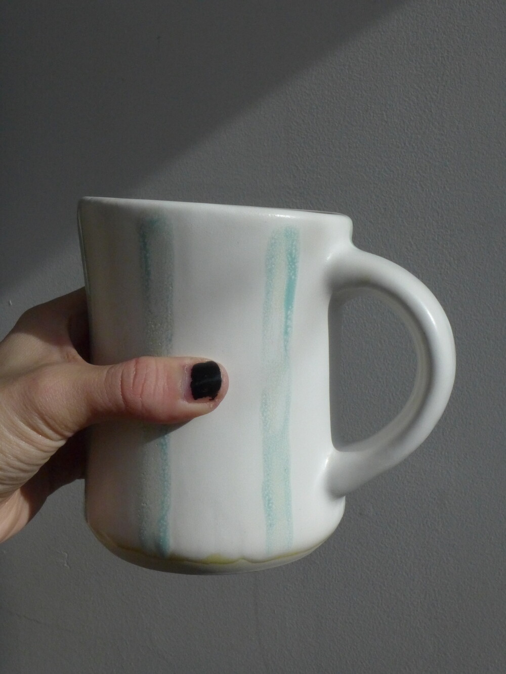 유영하듯 일렁이는 머그컵의 쉐입은 정해지지않고 흘러가는 자연의 형태와 같습니다.