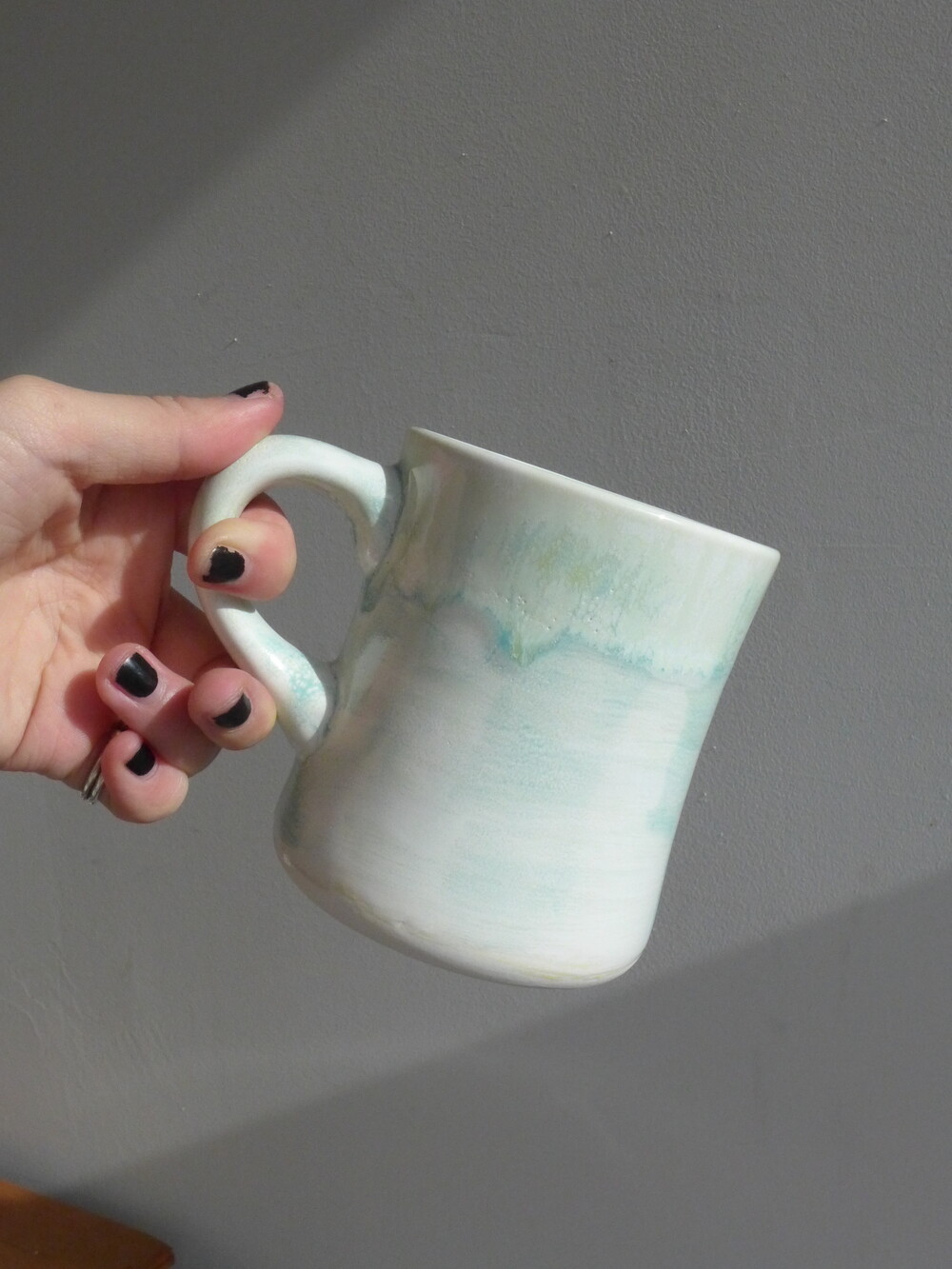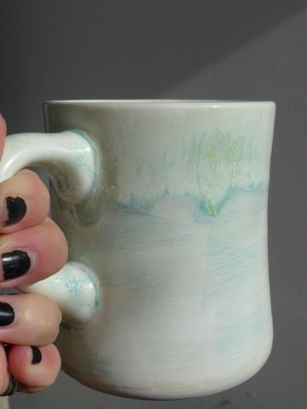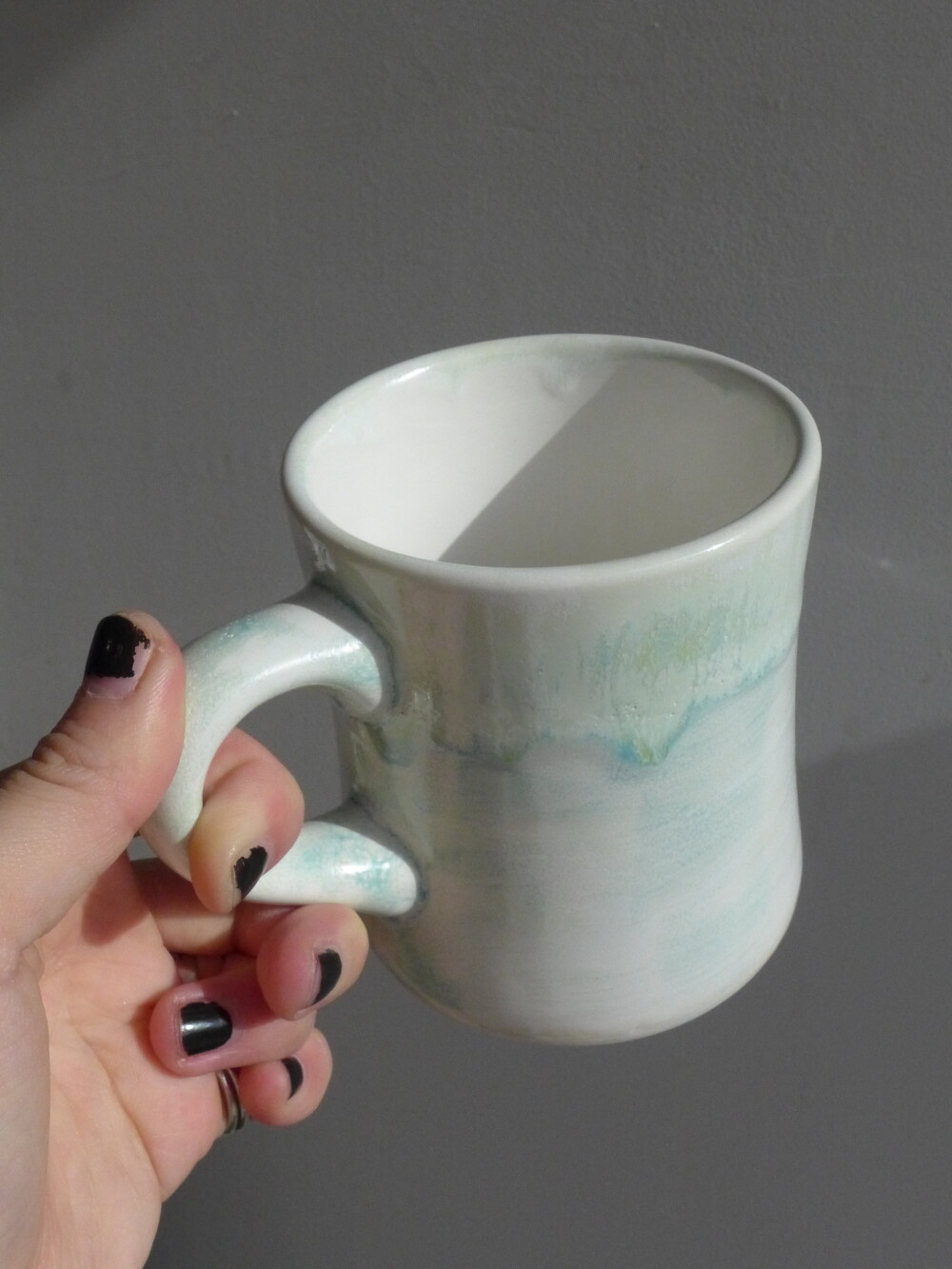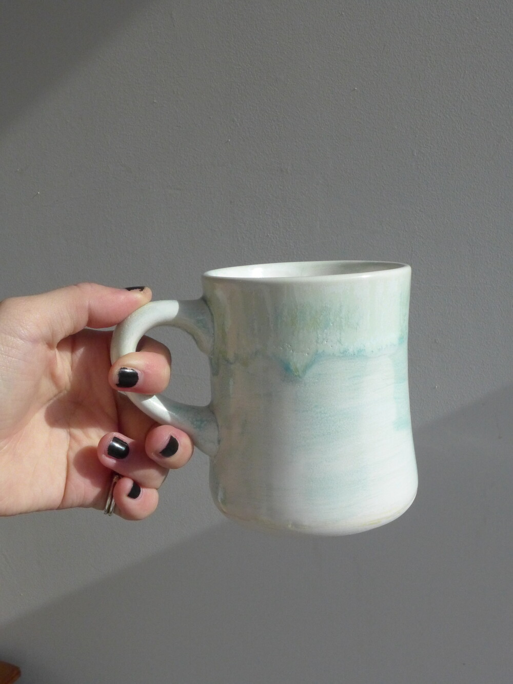 유영하듯 일렁이는 머그컵의 쉐입은 정해지지않고 흘러가는 자연의 형태와 같습니다.
