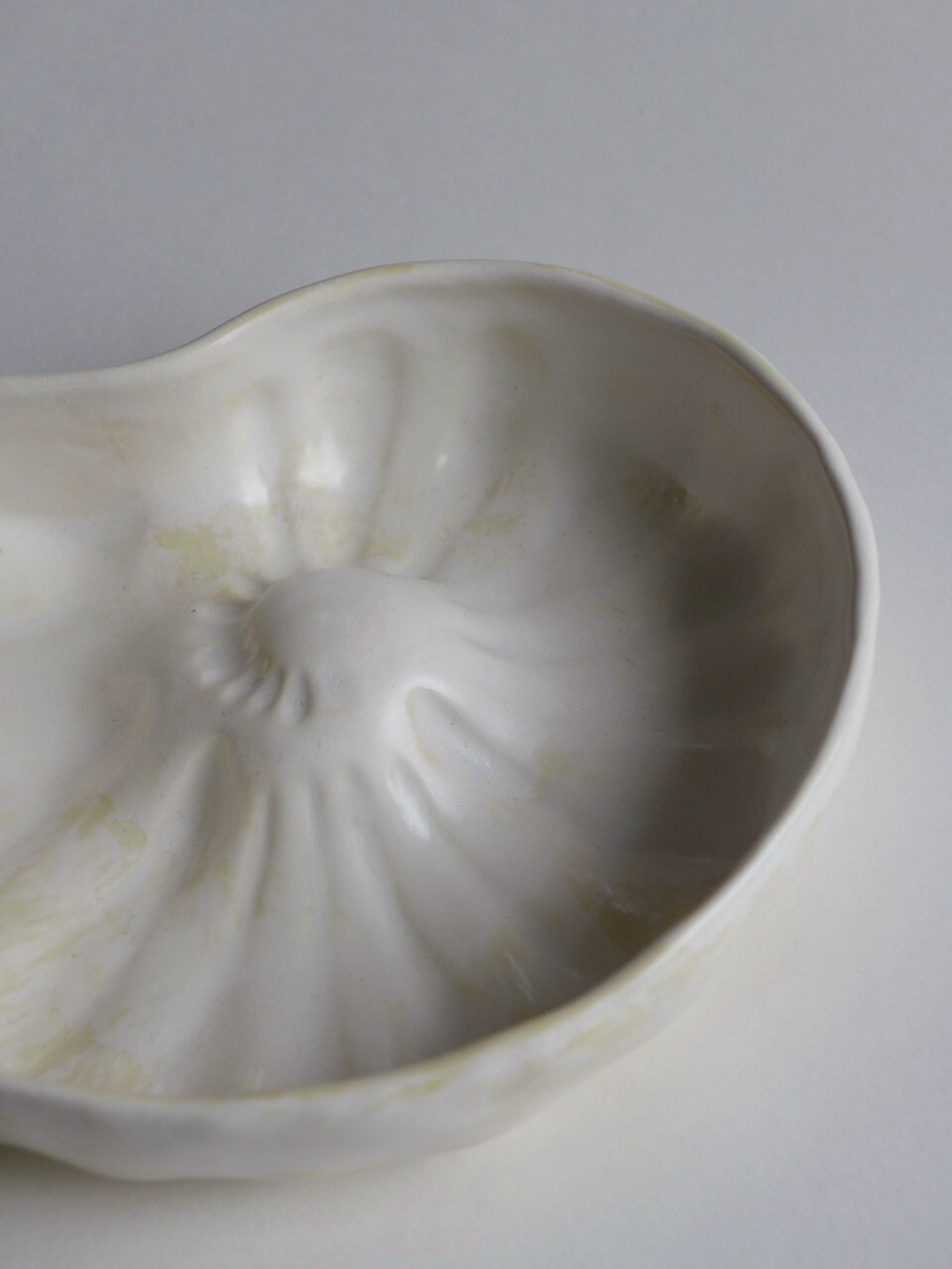 다양한 유리질의 유약들을 겹겹이 발라 오랜 시간으로 만들어진 암모나이트의 색을 표현해, 감도있고 깊은 암모나이트 보울을 완성했습니다.